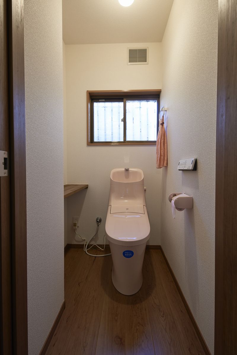 少し、空間を広げ、断熱材は新たに入れ直し。あたたかな暖色の空間で、広く、温かいトイレになりました。