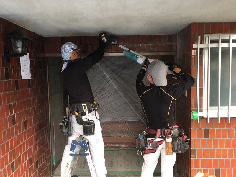 今回、弊社の方で提案させていただいたのは、サッシをきちんと撤去して、新しいサッシをはめ込むプラン。カバー工法では1日かかるのですが、このプランでは合計2.5日かかってしまいます(玄関サッシは1日でできるので防犯は問題無いんですが、撤去したまわりのセメント詰め、壁塗りなどに1.5日)。