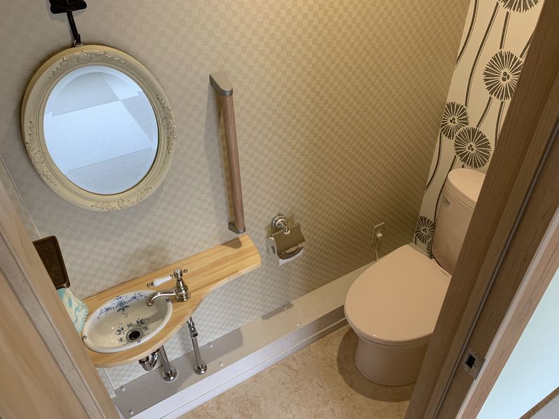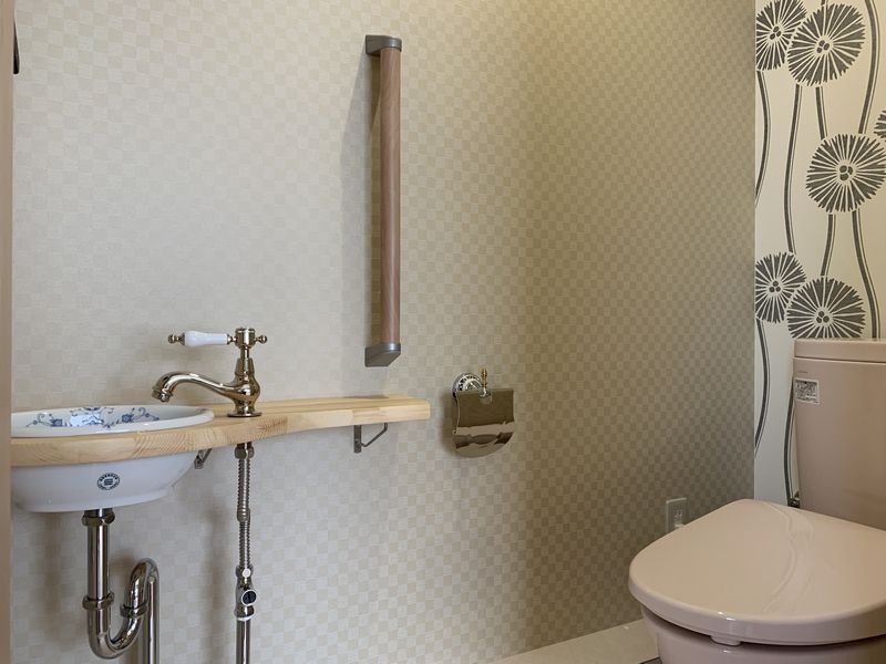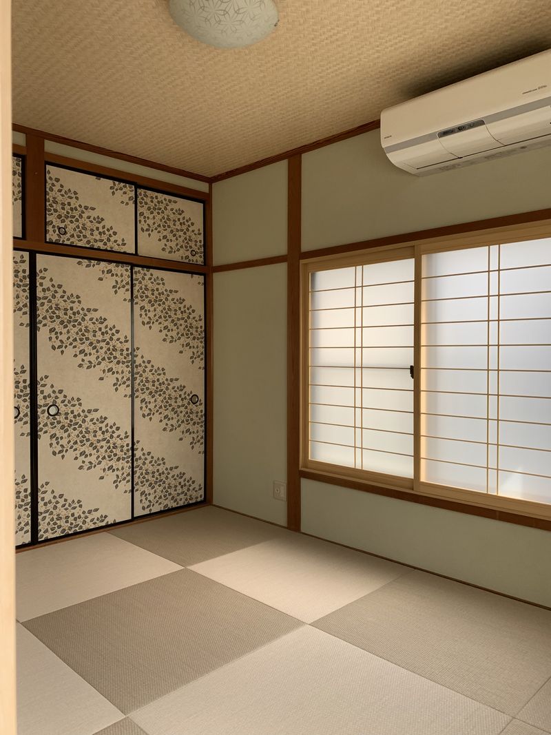 前編は、こちらに。 橿原市のY様。 お客様がネットショッピングなどで、お気に入りのシーリングファンをネットで見つけられました。 それをつけられるように電気配線はもちろん、その下地等もしっかり取り付け、内装工事へと進みます。 kitaafter2 kitaafter1   壁紙は、輸入物の壁紙を使いました。 芸術家・哲学者の「ウィリアム・モリス」氏のデザインで、一般的な壁紙と比べると、すごく高価な壁紙です。 クロスを貼ってくれる職人さん泣かせの、扱いづらい壁紙でしたが、こだわった分、仕上がりは圧巻。 シーリングファンもあわせてエレガントになりました。 窓は、断熱のために、内窓を設置しました(YKKAPのプラマード樹脂窓です)。 コストパフォーマンスの良い、部屋の断熱リフォームは絶対コレです。 washitsuafter3 ちなみに、内窓をつける前の窓は、冬場にはこんな結露。。。。 ketsuroytei 内窓をつけると、そんな結露が圧倒的に減ります。結露は室内の空気が、外の冷気で冷やされ、水蒸気から水に変わるという理屈です(氷を入れたグラスの表面に水滴がいっぱいついてくる原理です)。 和室には和室用の内障子タイプなどもあり、障子を外して障子風の内窓を付ける。そんな工事です。 畳は、い草の畳ではなく、和紙を用いた畳に入れ替え。ヘリ無し畳でお洒落にチェンジ。 襖紙は、画家の「竹久夢二」氏の「たちばな」デザインの使用。 たちばな(橘)を、どのように魅せるか、建具職人さんの傑作です。 washitsuafter1 washitsuafter2 あとはトイレの仕様も工夫を。 陶器や、水栓カランもイングリッシュ・テイストの雰囲気。 それに合うカウンターは、私の自作(笑)。思ったより時間がかかりました(汗)。 世界に一つしかない、トイレの空間。 toiretafter1 takahisayumeji トイレの1面には、伊勢型紙といわれる、着物の文様のデザインをモチーフにした、壁紙を採用。 「変わり立湧に菊松葉」といわれるデザインです。 ヨーロッパとジャパンの組み合わせ。こんな組み合わせも面白いですよね。 以上、各場所にお客様のこだわりを取り入れ、華麗で、使いやすく、快適なリフォームの完成レポートでした。
