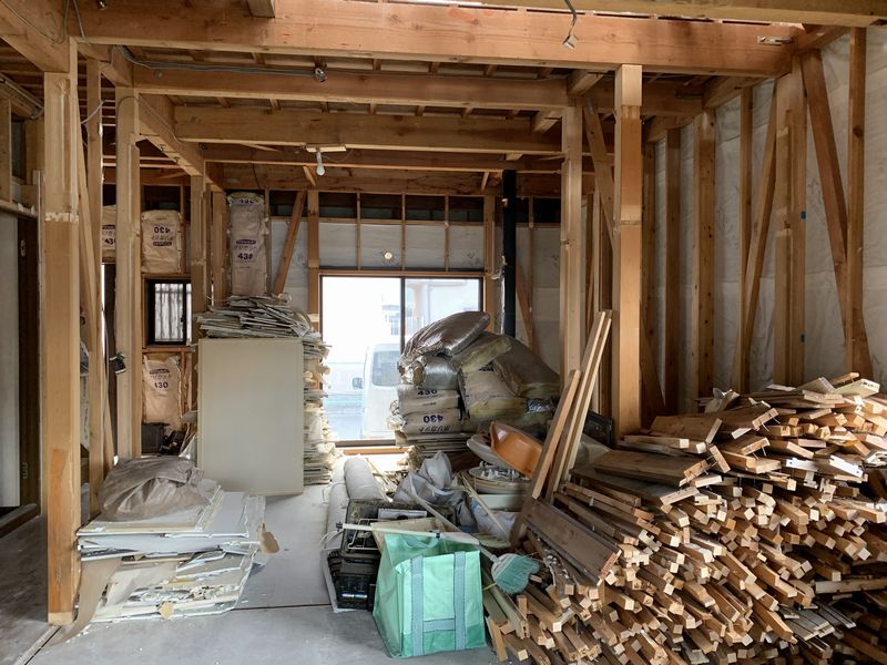 私も釘抜き、廃材運び等、手伝っていますが、何人前の働きか。。。(それでも、腰の筋肉が痛いwww)。