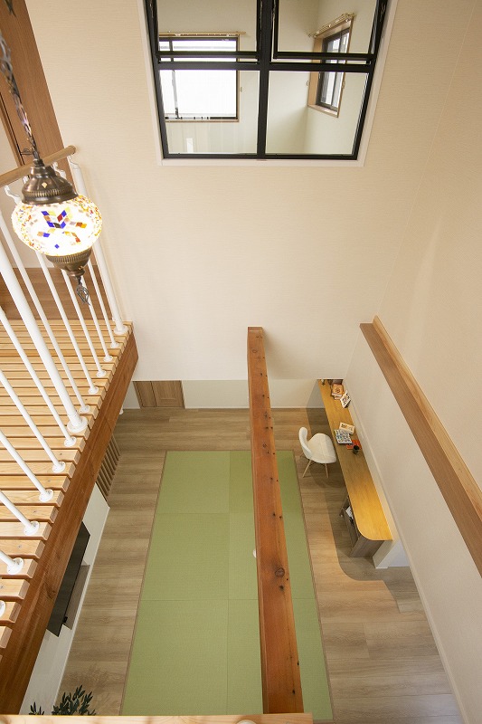 吹き抜けに通じる、「室内窓」からは、1階の家族の気配を感じることもできます。