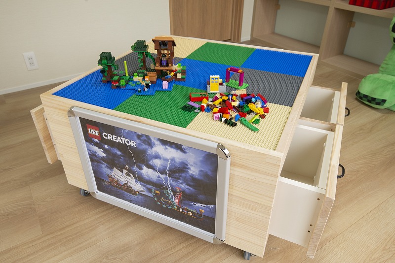 引き出しは両面に。そして、大好きなレゴのシリーズを側面パネルに。