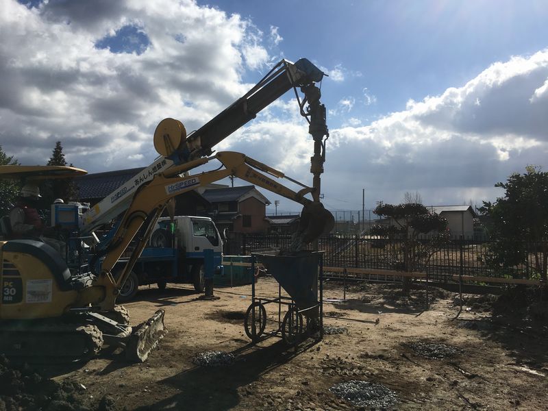 地盤調査をした結果、地盤の状態が悪いという検査結果がありましたので、建物、さらには基礎をしっかり作る前に、その足下の地盤もしっかり補強。専門業者に依頼し、丁寧に改良をしてもらいました。