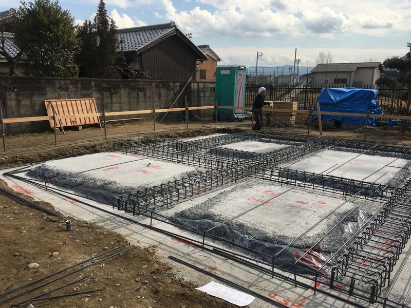 鉄筋もすごい数が入っていますよね。もし、近くで基礎工事がされていたら、上の写真と比較してみてください。