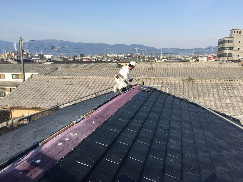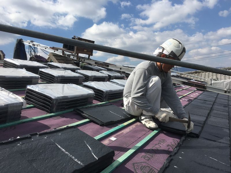 瓦といっても、和瓦(お寺の瓦屋根のようなかたち)ではなく、たいらな、平板の瓦で施工させて頂きました。