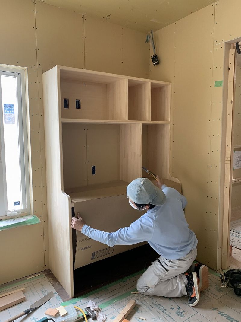 内部では、大工さんが下地や、造作家具の製作を進めてくれています。