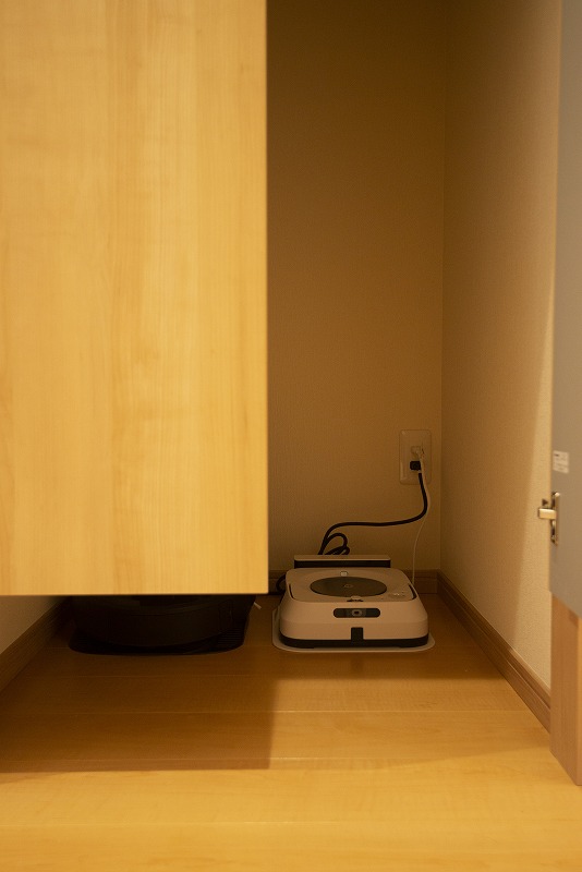これまでは、丸型の機械だけのセットだったので、階段の一番下などのスペースに、ルンバ基地をセットできました。