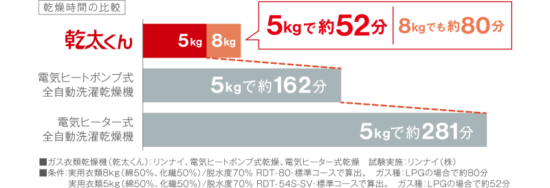 ガスならではの、温風を作る速さと、コスパの魅力で、電気の乾燥機を上回る性能が人気です。