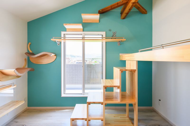 床や間仕切りに、アクリルパネルなども取り入れて、猫ちゃんの肉球や、行動を観察できる仕掛けも豊富に。