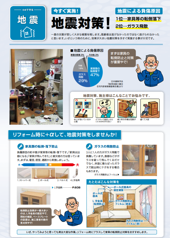 家具の転倒防止、ガラス飛散対策、皆様の備えが十分ですか?