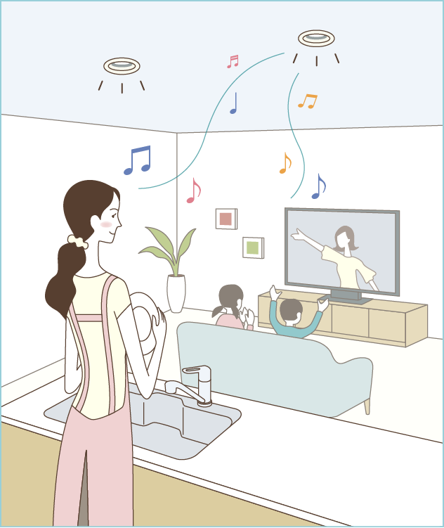 テレビの音が、上からも降りそそいで、音楽番組や、映画などの臨場感もアップ。ステレオサウンドにも出来るので、すごく贅沢なリビングライフが過ごせます。