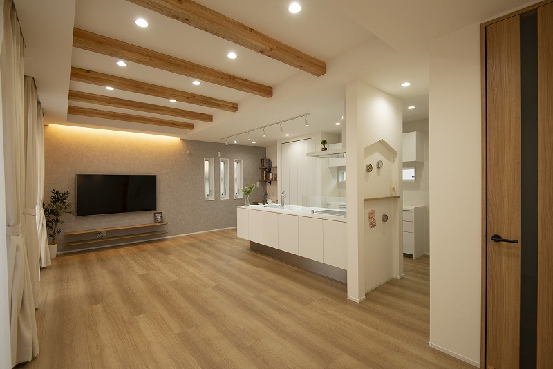 テレビの上の間接照明が、LDKの演出効果を高めてくれています。