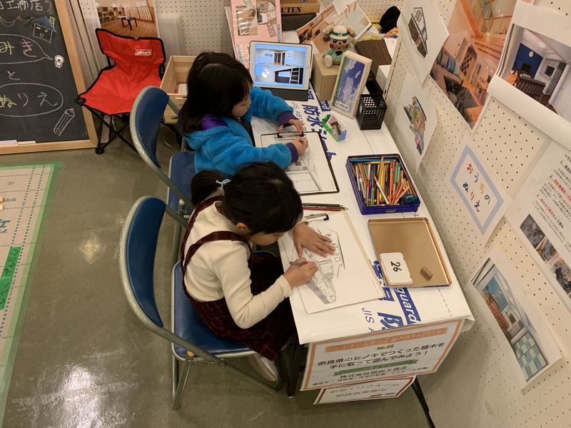 また、実際の設計で使った、家の3Dスケッチを使って、家のイメージカラーを考えていく塗り絵コーナーももうけました。