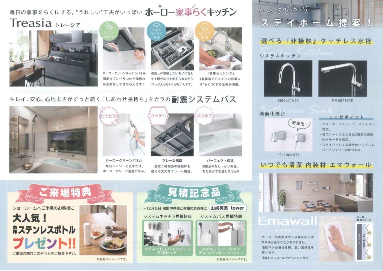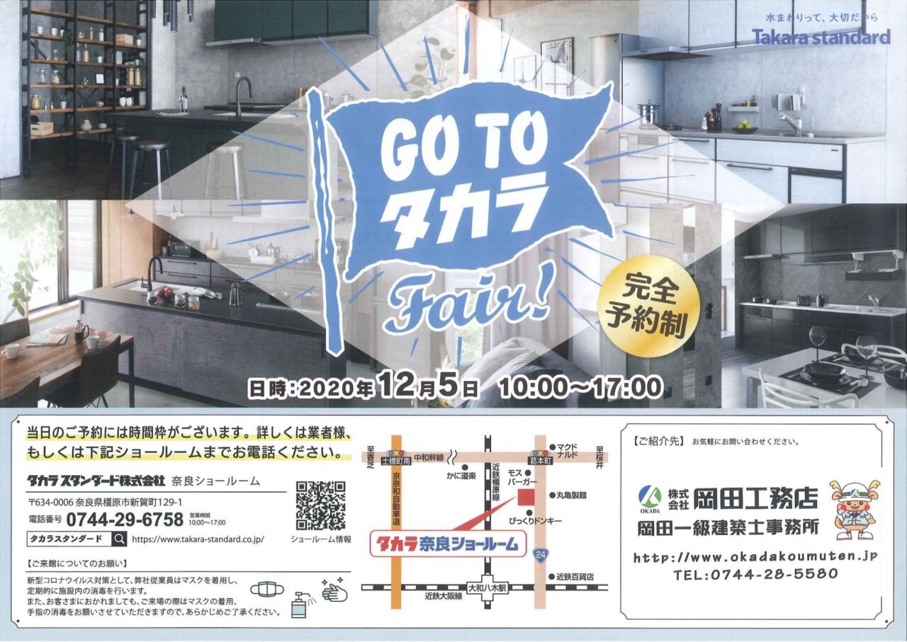 2020年12月5日(土)タカラスタンダードショールーム(橿原市新賀町129-1)で完全予約制の見学会を行います!